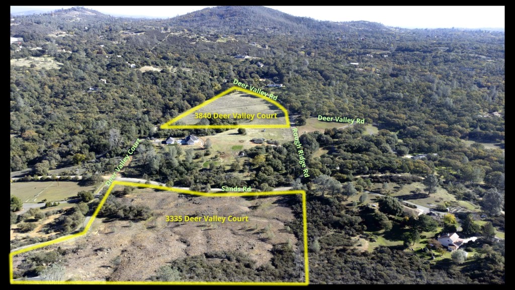 This 10-acre parcel has a border directly on Deer Valley Road and is intersected by Deer Valley Court into two physical land blocks. It is designated as RL-10 (Rural Land). There are three neighbors sharing direct borders with this parcel. The Deer Valley Court roadway that cuts this parcel into two is utilized by surrounding neighbors to access Deer Valley Road. This section of road was recently paved with single lane asphalt, at the expense of one adjoining neighbor. This parcel is zoned Rural Residential. The parcel is in a Very High Fire Hazard Severity Zone (VHFHSZ) per the latest Cal Fire map.
